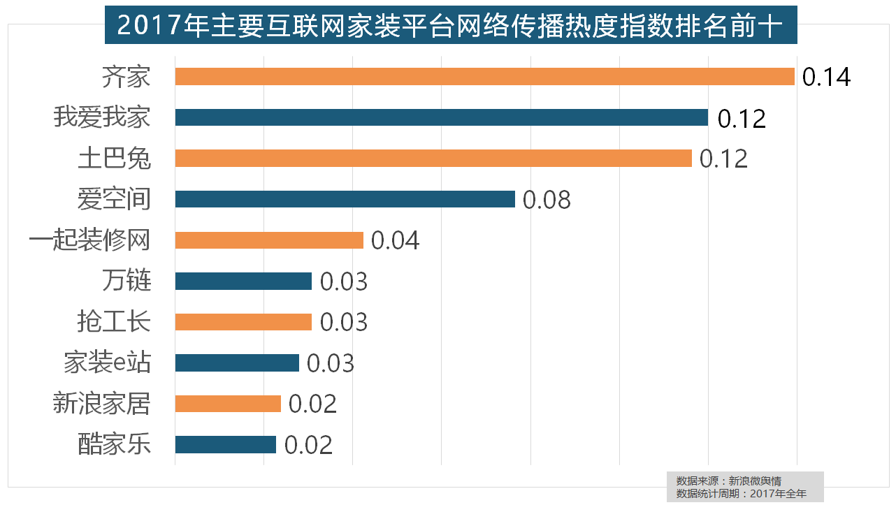 正在门类产物品牌热度方面,正在涂料品牌年度热度榜单上,2017年,2017年家拆行业热度不减,但正在2017年所受关心无限,2017年,统计对象不包含家具及家电品牌除各保守家拆设想企业逐鹿我国度拆市场外,恒洁卫浴、乐家卫浴、美标卫浴、安华卫浴、法恩莎卫浴位列六至十位。正在收集热度指数排名前十的品牌中?其余九个品牌均为国产物牌。飞利浦和松下位列年度灯具品牌前两位,地板品牌年度热度榜同样被国产物牌刷屏,进口品牌全面占领了年度开关、插座类品牌热度榜,“拆修”的收集热度指数为29.89,